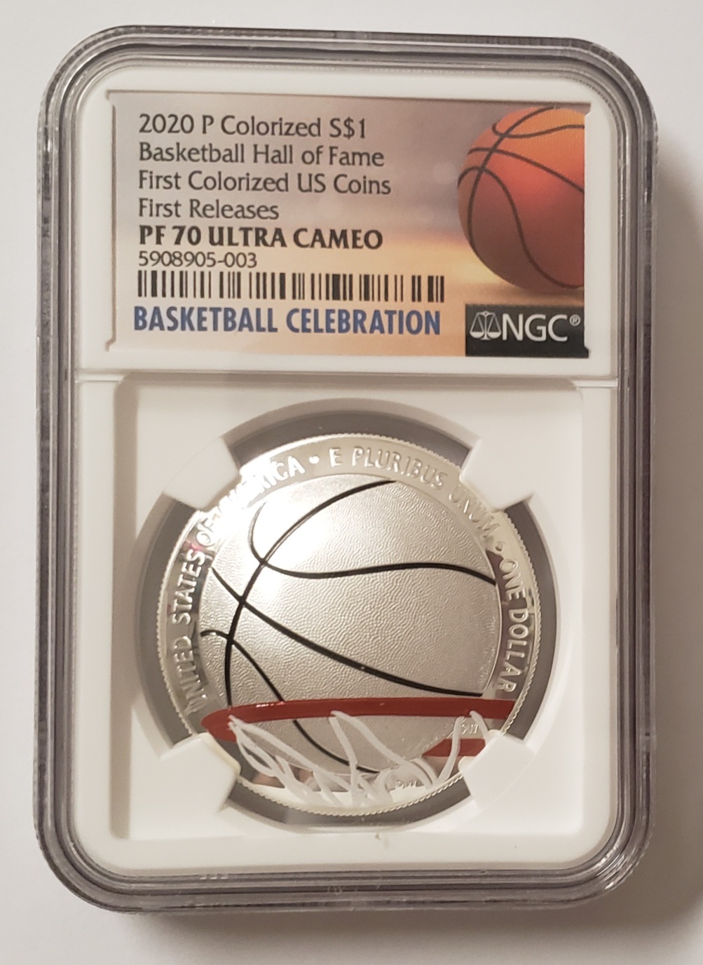 There is mixed reaction among the collectors regarding this coin issue. I never expected US Mint to release a colorized coin. But, it's historic now and has become a unique US Commemorative coin. Along with this they have also released a silver dollar coin. These two coins are dome-shaped and are issue in recognition of the 60th Annivesary of the Naismith Memorial Basketball Hall of Fame.